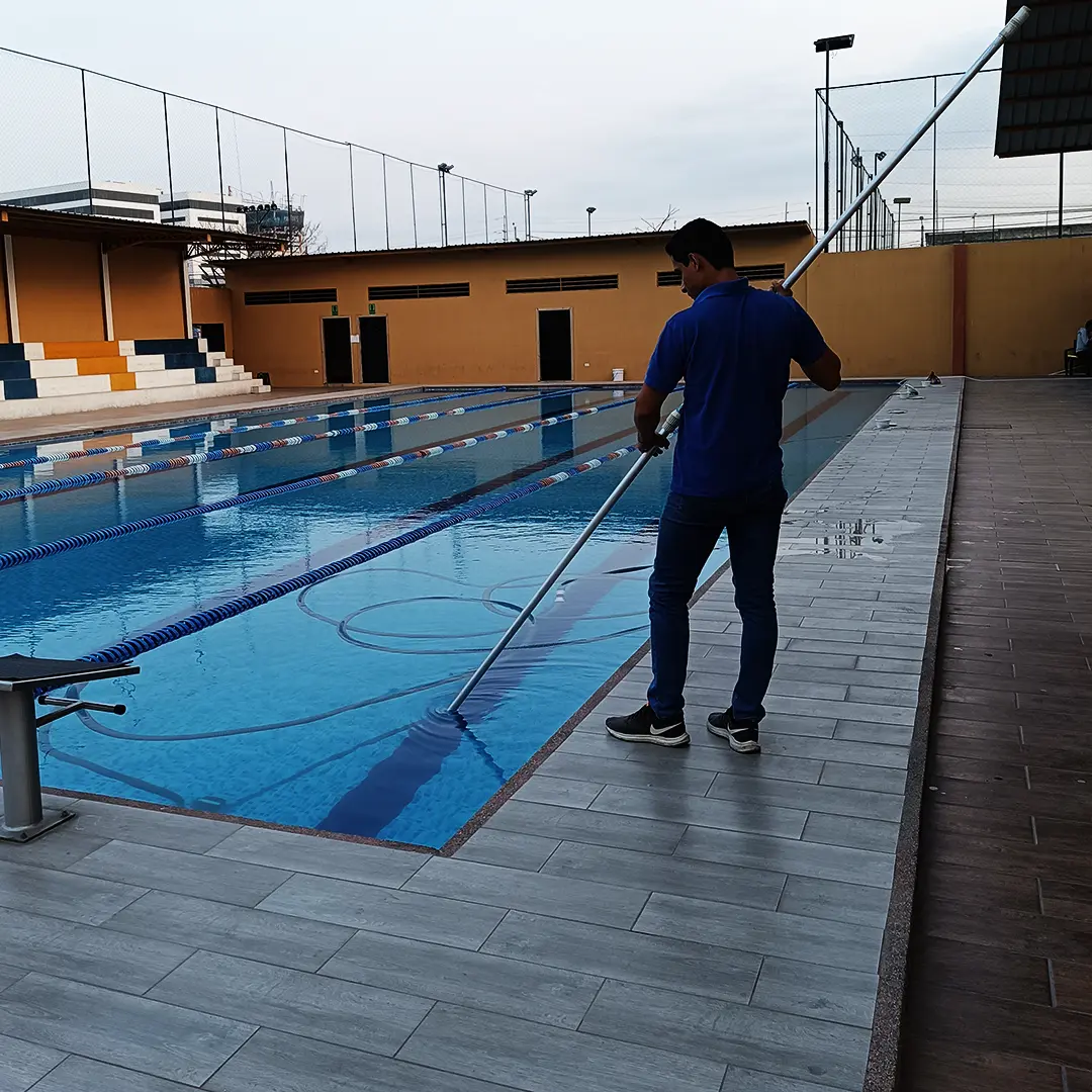 Limpieza estructural, aspirado, control químico y mantenimiento integral de piscinas.